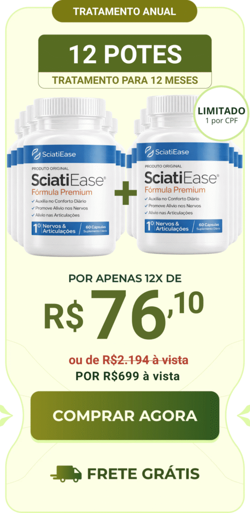 SciatiEase é uma fórmula 100% natural para aliviar dores articulares e melhorar a saúde das articulações e nervos.